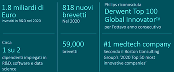 Philips S.p.A è presente in Italia dal 1918 come leader nelle Tecnologie per la Sanità, focalizzato su soluzioni tecnologiche e servizi a supporto del ciclo di cura del paziente, dal benessere a prevenzione, diagnosi, trattamento e cura domiciliare. Il fatturato medio nell’ultimo triennio (2020-2022) è di circa 341 milioni di Euro, con 680 dipendenti (dato di fine Dicembre 2022) distribuiti fra le città di Milano, Rubano (PD), Torino, Bologna, Genova, Roma, Bari, Napoli e Catania. Collabora attivamente con realtà del settore Sanitario come Area Vasta Emilia Centro AVEC (6 aziende sanitarie), Università Campus BioMedico Roma, Liguria Digitale (3 aziende sanitarie), AORN Cardarelli Napoli, Azienda Sanitaria Provinciale di Cosenza, A.O. Pugliese e Ciaccio di Catanzaro, ASL Bari, ASL Vercelli, ASST Cremona, ASST Ovest Milanese, Fondazione Policlinico Tor Vergata, IRCCS Policlinico S. Matteo Pavia, Ospedale Miulli, AUSL Romagna, Ospedale Pediatrico Bambino Gesù Roma. La missione dell'azienda è quella di migliorare la vita di 2,5 miliardi di persone ogni anno entro il 2030 adottando una strategia di Open Innovation basata sulle relazioni con istituti, università e partner industriali e sulle sinergie a livello aziendale in tecnologia, ricerca, design e proprietà intellettuale, che consentono di portare le innovazioni sul mercato in modo più rapido ed efficace. Come leader focalizzato nella tecnologia sanitaria, siamo determinati a rendere il mondo più sano e sostenibile attraverso l'innovazione.